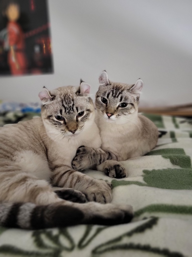Talya est née le 3 mars 2022 chez « Highland lynx de la Montagne » et Tylion le 26 mars chez « King of Highland Lynx ». J’ai pu suivre grâce à leurs éleveuses les gestations de leurs mamans, leur naissance, leur croissance durant tout le temps de la préparation au voyage pour les ramener à la maison le 3 août 2022 : adaptation réussie ! Que du bonheur ! Et des bébés à venir…
